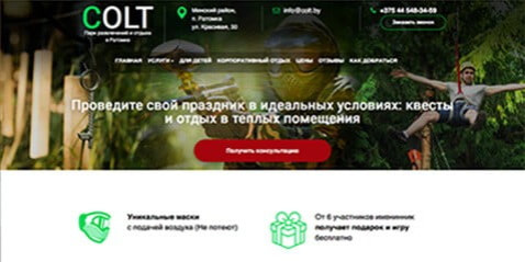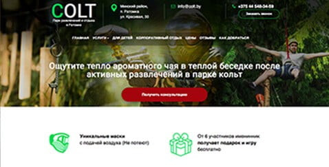 Перед нами стояла задача: полная упаковка бизнеса клиента, увеличение уровня продаж и прибыли, привлечение новых клиентов в парк активного отдыха Colt, запуск сайта и рекламной кампании через 3 месяца после обращения. Владелец парка хотел упаковать сайт как можно глубже, чтобы клиент сразу понимал, какие ему предоставлены услуги, каково их качество и какие у него есть гарантии.