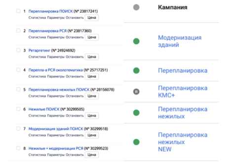 При разработке рекламной кампании, мы тщательно подбирали инструменты, с которыми будем работать над сайтом, подготовили план наших действий по каждому моменту работы с сайтом, подключенными рекламными сервисами, целевой аудиторией, конкурентами и трафиком. Было принято решение о сегментировании контекстной рекламы (Яндекс Поиск, Гугл Поиск, РСЯ, КМС, Ретаргетинг, Ремаркетинг): жилые и нежилые помещения, степени теплоты клиентов (тематика/околотематика), этапы оказания услуг. Мы понимали, что с каждым пользователем компании нужно работать. Поэтому внедрили в работу amo-crm для полноценного ведения клиентов.